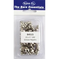 The Bare-Co UNF Grease Nipples come in a pack of 20, with a 1/4" UNF thread size.