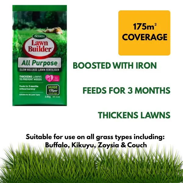 Transform your lawn into a lush, green paradise with Australia's top choice for lawn care — Scotts Lawn Builder™ All Purpose Slow Release Lawn Fertiliser. Ideal for both the seasoned gardener and the enthusiastic beginner, this fertiliser is celebrated among both home gardeners and professional turf managers for its consistent results and ease of use.